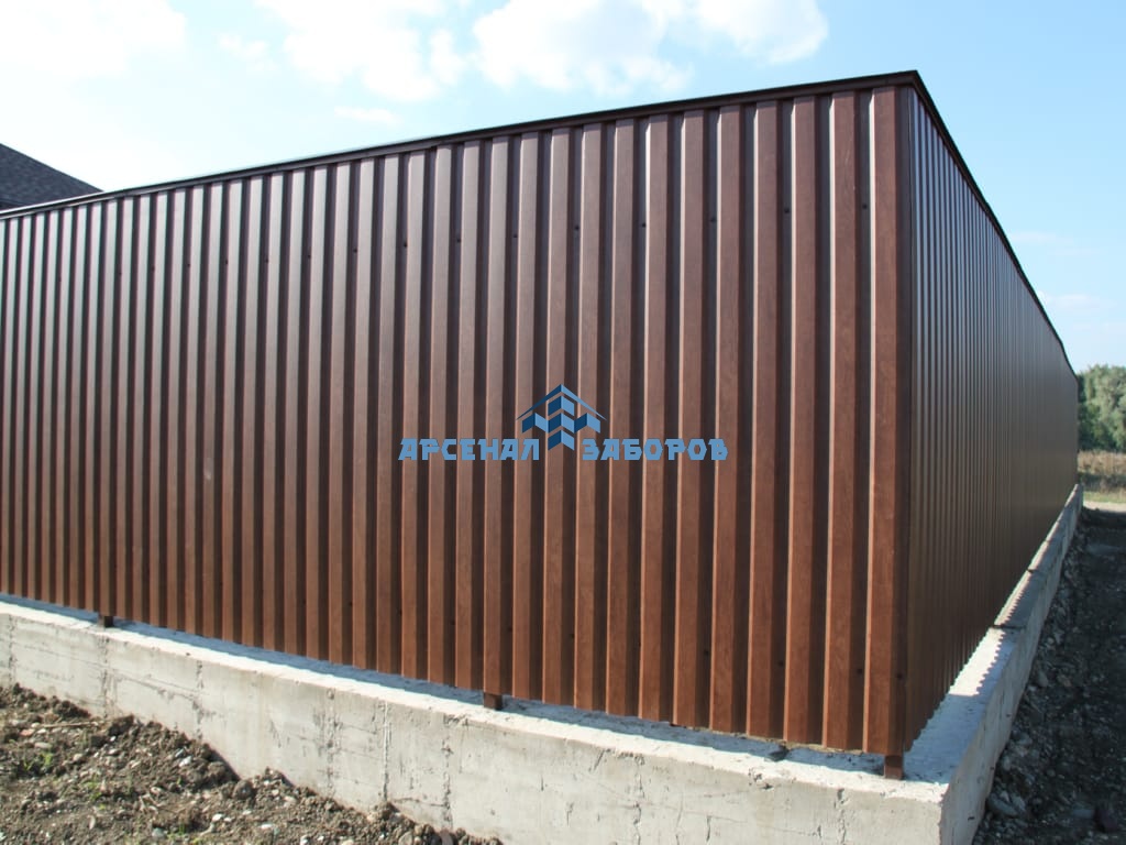 Конструкция забора из профлиста на ленточном фундаменте и с кирпичными столбами